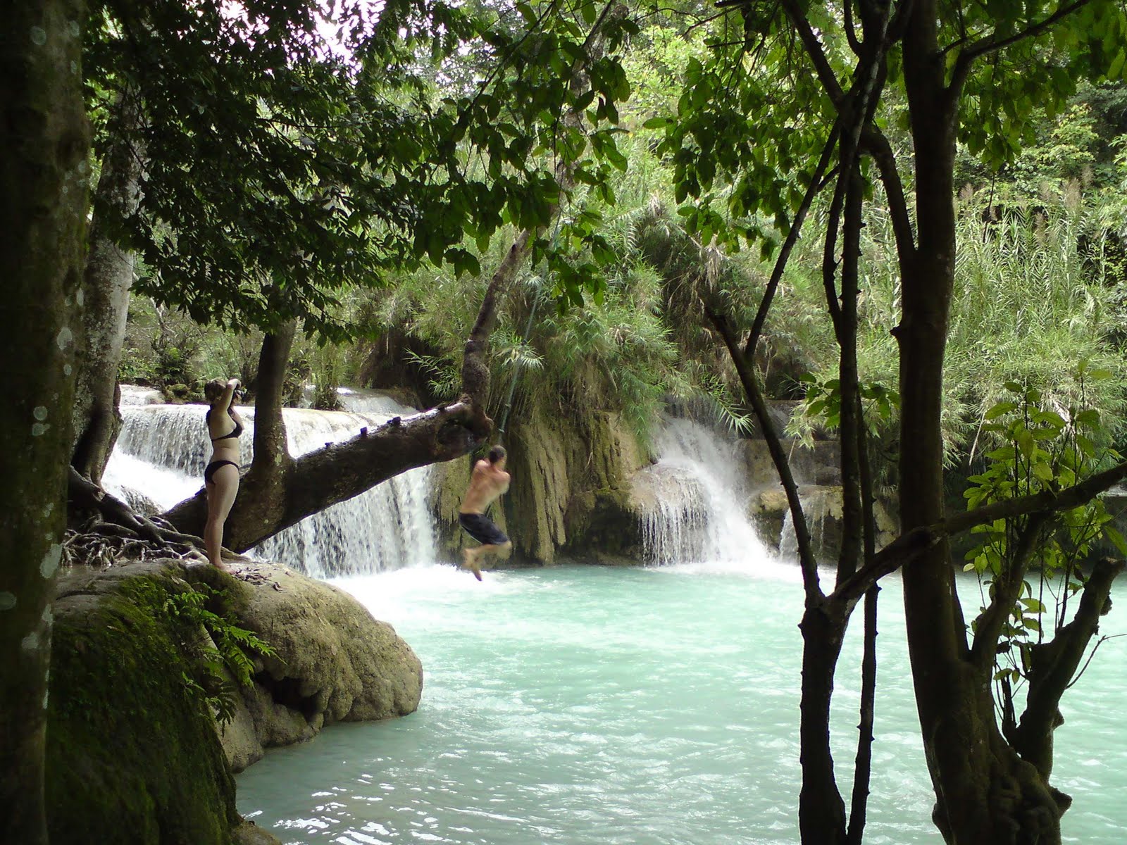 Vang Vieng, тази перла на casual туризма, ако мога така да я нарека, се намира на няколко (малко) часа път с автобус от столицата. Евтиния (както и в Камбоджа), яко австралийци и друга сволоч, може би заради релаксната обстановка, многото неща, които можеш да правиш (трекинг, пещери, каяк, езда на слонове, ръчка с мотоциклети или колелета из горите и т.н. и т.н.), вкл. да си плаваш с вътрешна гума от камион надолу по реката и да си спираш където ти е кеф в някой от многото барове по двата бряга. В тях освен да си поркаш можеш да играеш на дърпане на въже в калта, волейбол в калта, да скачаш от специално построените дъвени кули във водата, да се кефиш на музиката и така. Баровете във самото градче/село да известни с телевизорите си – във всеки бар има по някоко големи телевизора и всеки си пуска негов репертоар: „Приятели“ или анимация, или холивудски кинопродукции... Абе можеш да изкараш там цял ден хапвайки, пийвайки и лафейки с приятели докато зяпаш „Prison Break”, напр.
